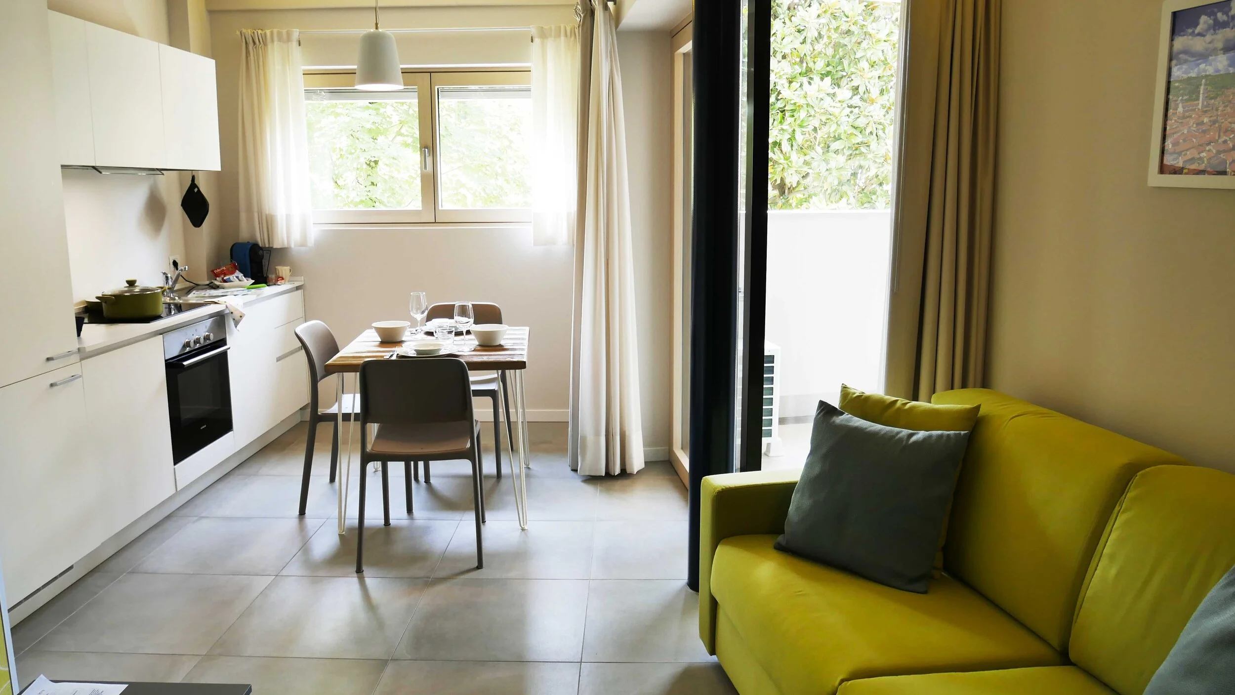 Our apartments have one bedroom with a king size bed, a sofa, which can bacome a queen bed; so each apartment fits 4 people. Green House 71 it is a perfect solution for who wants to enjoy Verona for holidays, work, or any personal reasons.